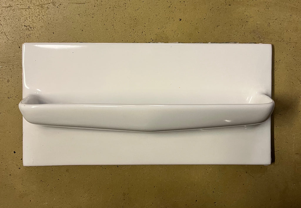 Vit kakelplatta med tvålkopp